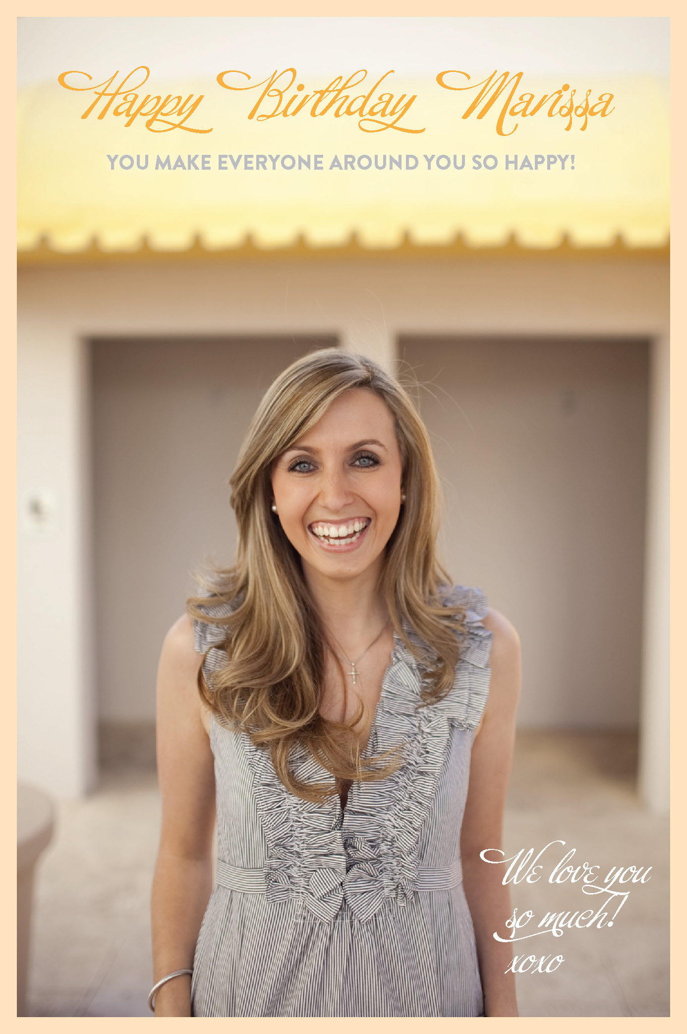 Marissa, you are one of my absolute favorite people on the planet and I thank God for you everyday!!! You fill my every day with so much positivity and love! I hope your birthday is full of so much love and lots of laughs! Wishing you a year even more awesome than the last!! Love, Emily + Brady